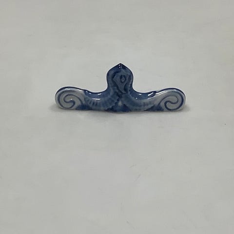 Sæt på 2 Bing og Grøndahl Blåmalet, Musselmalet og Empire Knivstole med defekter Måler 9cm / 3.54 inch Et lille afslag på bunden af hver.