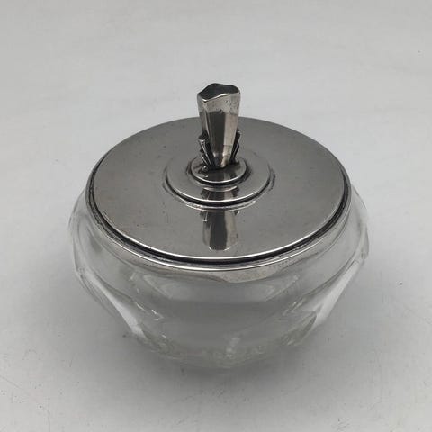 Georg Jensen & Wendel Sterling Sølv Magnolia Sølvlåg No. 2C og Baccarat Krystal Confiture Glas Måler H 8 cm (3.14 inch) Diam 9 cm (3.54 inch) Vægt Låg 69.3 gr. (2.44 oz)
