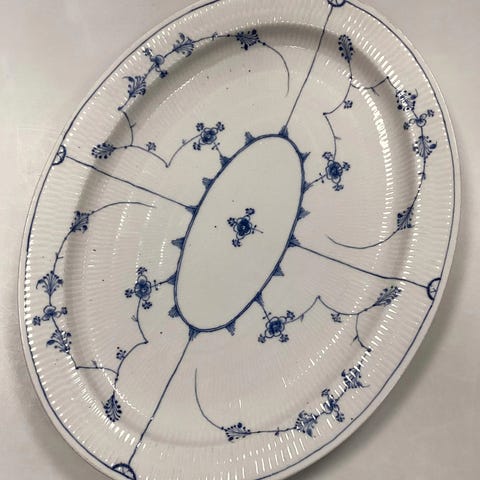 Royal Copenhagen Musselmalet Riflet Stort aflangt Fiskefad No. 105 VI SENDER
