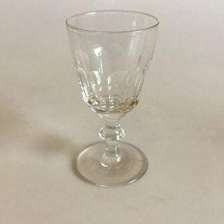 Holmegaard Mars Hedvinsglas med slebne stjerner og matteret rand. Designet af Per Lütken 1943. Udgået i 1960. Måler 6 cm / 2,36 in.