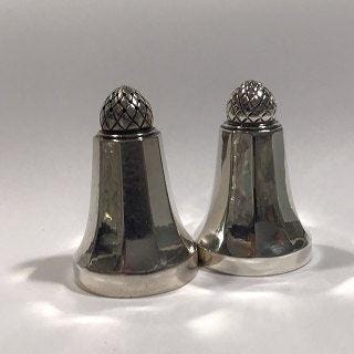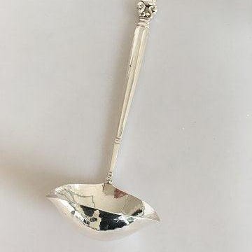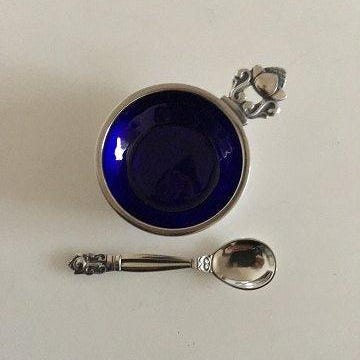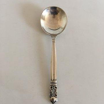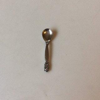 Georg Jensen Konge Sterling Sølv Lang saltske No 104. Måler 8 cm. Designet i 1915 af Johan Rohde (1856 - 1935). Johan Rohde var grafiker, maler, arkitekt, designer og kritiker. I 1880’erne, var Rohde en vigtig kunstner i Tyskland og Danmark. Han udfordrede de traditionelle måder at undervise på Det Kongelige Danske Kunstakademi og var førende i tilblivelsen af Den Frie Udstilling, som havde til formål at vise værker af kunstnere, hvis arbejde ikke blev accepteret. Han designede genstande til hverdagen - møbler, sølvtøj og korpus til hans eget hjem. Rohde og Georg Jensen mødte hinanden første gang, da Rohde bestilte Jensen til at udføre et af hans korpusdesigns. Da dette var vellykket, besluttede de at fortsætte samarbejdet. De arbejdede sammen i mange år efter.