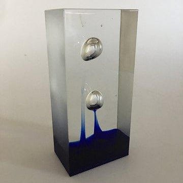 Torben Jørgensen Glaskunst for Holmegaard fra 1995. No. 877. Glasblok med koboltblå farve og matslebne sider. 7 x 7 x 7 cm. I god stand.