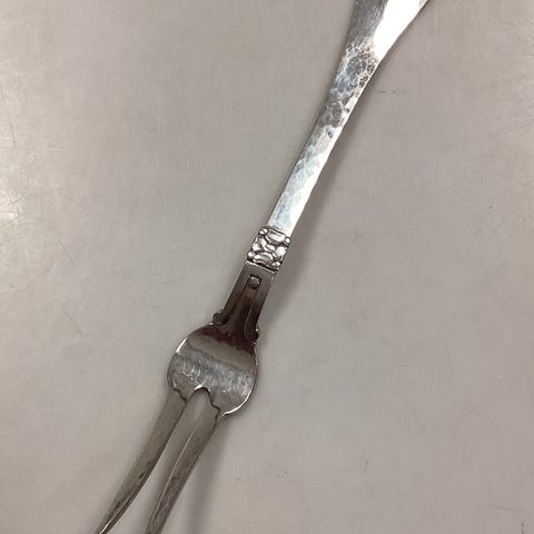 Holger Kyster Sølv Servingsgaffel. Måler 20 cm. Mærket: haandsmedet, S , Holger Kyster og 830.
