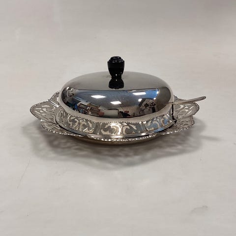 Engelsk William Comyns & Sons Ltd Sterling Sølv skål med låg og glasindsats V...