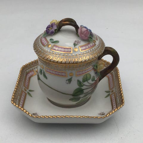 Royal Copenhagen Flora Danica 20/3575 + 20/3576 Trekantet Cremekop VI SENDER