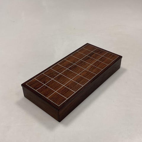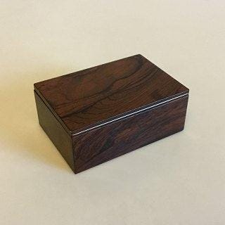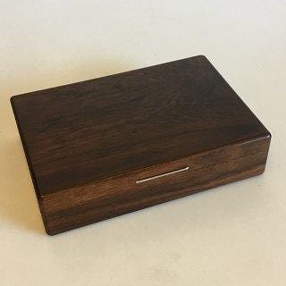 Spillekortsæske af Palisandertræ. Fabrikant ukendt. Måler L: 11,7 cm / 4.61 in. B: 6 cm / 2.37 in. H: 7,3 cm / 2.88 in. Små ridser og buler, ellers i rigtig fin stand (Se fotos)