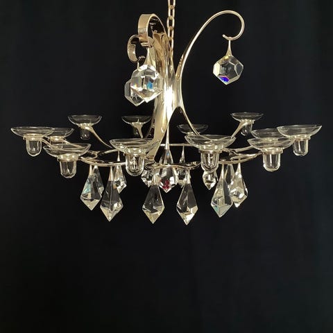 Georg Jensen Sterling Sølv Lysekrone af Henning Koppel med glas No 1272 fra 1...