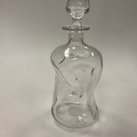 Holmegaard Glaskaraffel cylinderform, rigel om hals, hul prop VI SENDER