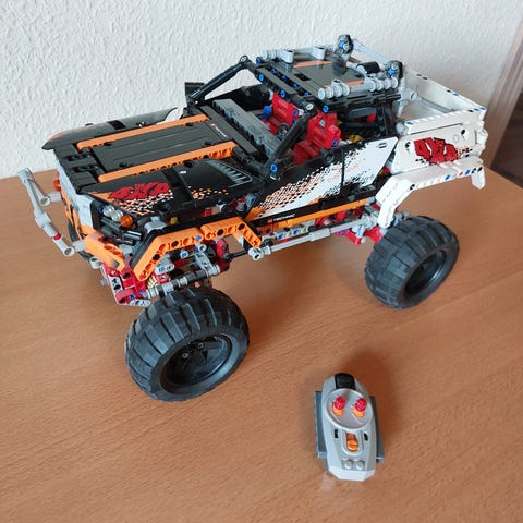 Lego Technic, 9398 Crawler, Fjernstyret lego Technic 4x4 bil med motor og batteri box. fjernbetjening er en standard power funktions fjernbetjening, men den følger ikke med. Æske og samle manual medfølger. Fra røg og dyrefrit hjem.