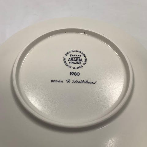 Arabia Finland Juleplatte 1979 Design: Raija Uosikkinen Måler 23cm / 9.06 inch Denne vare kan afhentes i følgende butik: Store Kongensgade 76, Lyngbyvej 155, 2100 Kbh. Ø