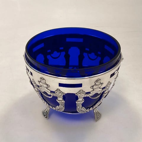 Dansk Glas Sukkerskål med sølvplet montering VI SENDER
