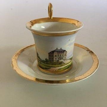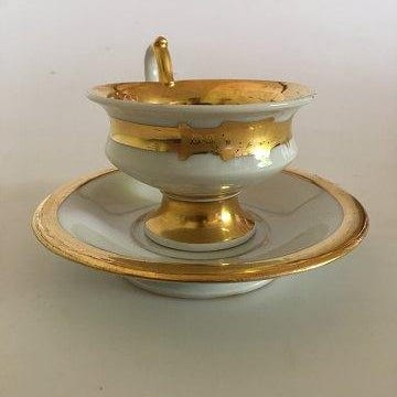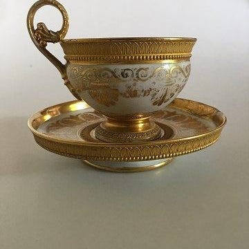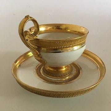 Royal Copenhagen Empire Kop og underkop fra 1785 til 1820. I god stand, men lidt slid. Kop måler 6,8cm høj og 6,5cm i dia. Underkop måler 12,5cm. Underkop fra 1785 og kop fra omkring 1820.