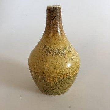 Royal Copenhagen Ludvigsen Vase No 1381 med Gullig Krystal Glasur H 12.5 cm(nedslebet)