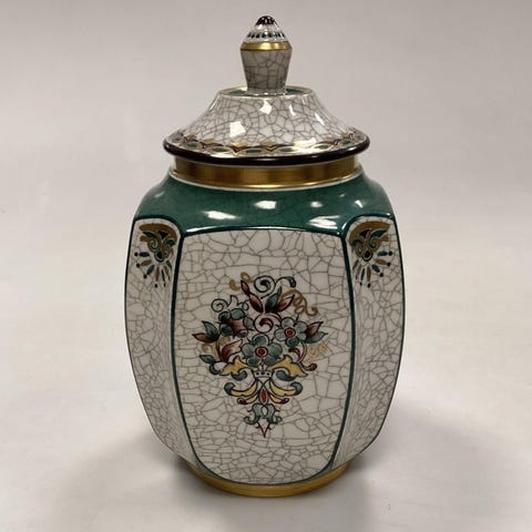 Stor Flot Lågkrukke i Grøn Glas i Josef Hoffmann stil VI SENDER