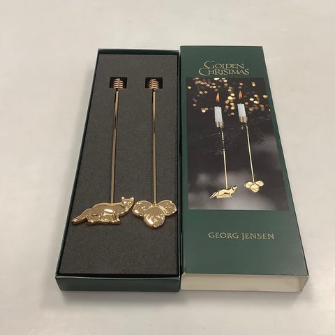 Georg Jensen Golden Christmas Lyseholder - Gås og Juletræ 1998 2 i en pakke Design: Andreas Mikkelsen