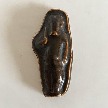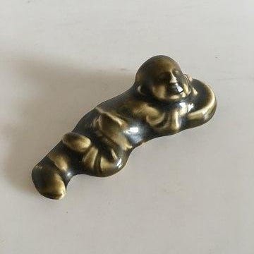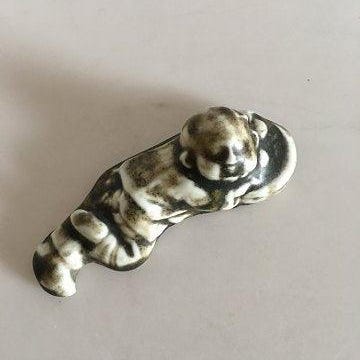 Royal Copenhagen Stentøjs relief Figur af Japensk munk med barn. Prøve glasur. Måler 9cm.
