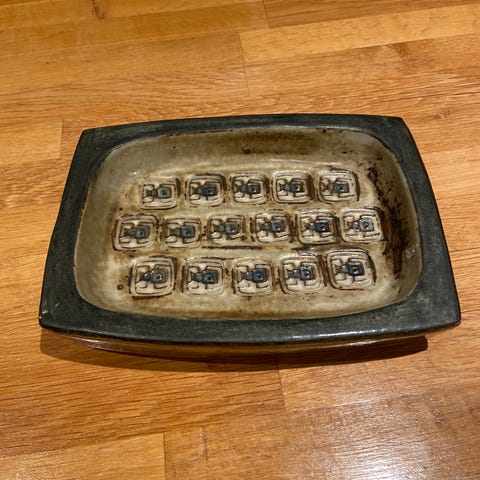 Royal Copenhagen Stentøjsskål / Askebæger No 21871 af Jørgen Mogensen. 1 Sort. I fin stand. 21.5 x 16 cm. Er lysere end på billedet.