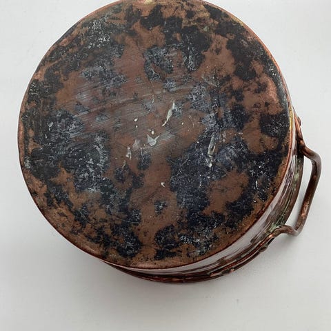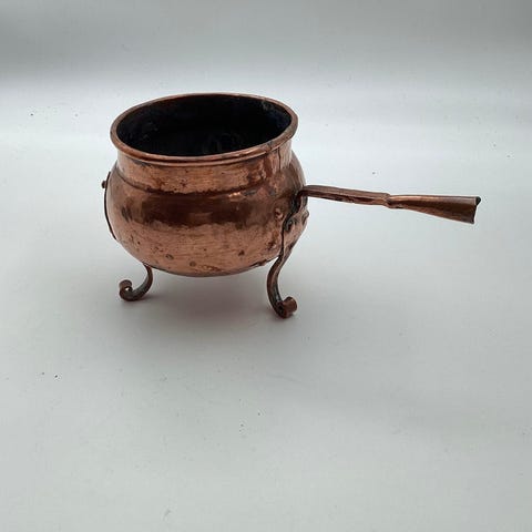 Par tragte i kobber. Fremstillet i Danmark omkring 1900. Begge i god stand uden skader. Den måndste måler 7 cm (2.75 inch) i højden og 6½ (2.55 inch) cm i åbningen. PRISEN ER FOR BEGGE