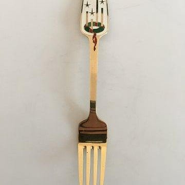 A. Michelsen 1953 Julegaffel Forgyldt Sterling Sølv med Emalje VI SENDER