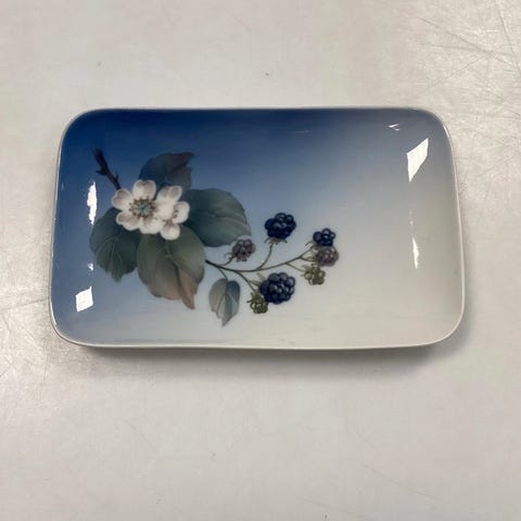 Royal Copenhagen Mørkeblå Firkant Skål med Blomster No. 2835 / 861 Måler 16,8cm x 10, 5cm (16.61 inch x 4.13 inch )