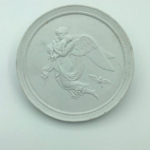 Bertel Thorvaldsen: Royal Copenhagen bisquit platte Ungdom og forår Efter relief modelleret i Rom 1836. Måler 13.5cm (5.31 inch). Fremstillet i slutningen af 19. århundrede
