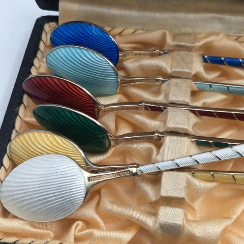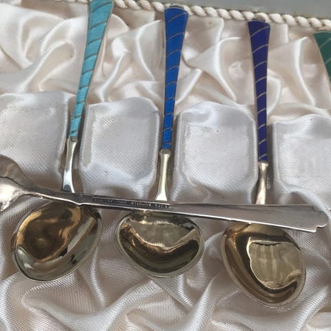 Egon Lauridsen (ELa) Sterling Sølv / Emalje Østersgafler Forgyldt (6) VI SENDER