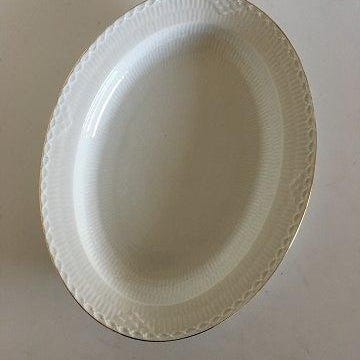 Royal Copenhagen Tradition Hvid Halvblonde m. Guld Stort Ovalt fad No 533. Måler 36 cm x 28,5 cm