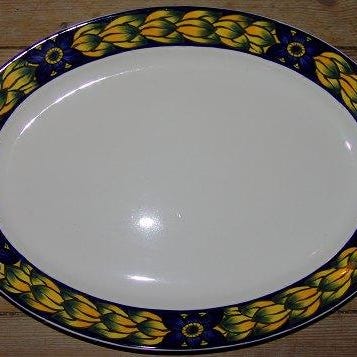 Royal Copenhagen Bellis og Følfod Rouladefad No 9442. Måler 37 cm x 14 cm (14 9/16 in. x 5 33/64 in.)