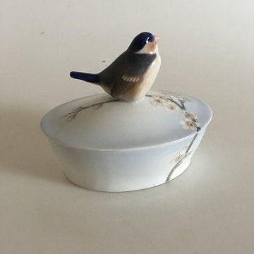 Royal Copenhagen Art Nouveau Lågskål med Blomst og Sommerfugl Motiv No 1528/2...