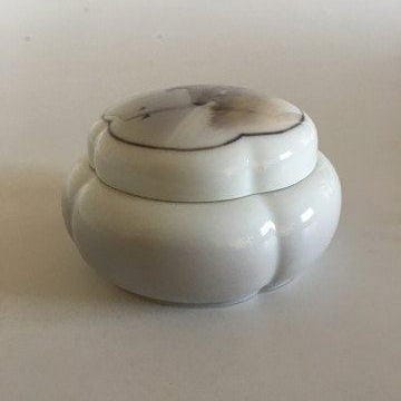 Royal Copenhagen Art Nouveau Lågskål med Blomst og Sommerfugl Motiv No 1528/2457. 4 cm H. 9 cm Ø. 1. Sortering. I fin hel stand.