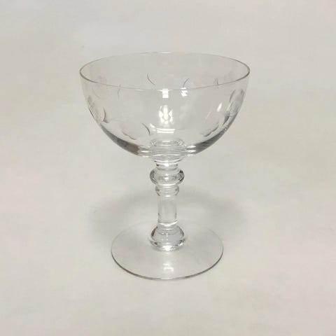 Holmegaard Rosenborg Rødvinsglas. Måler 14cm / 5.51 Rosenborg er tegnet af Jacob E. Bang. Han designede glasset for Holmegaard i 1929, og det var i produktion indtil 1970.