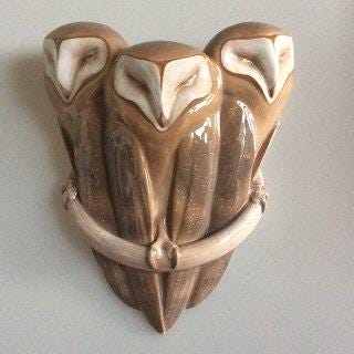 Royal Copenhagen Art Nouveau Vægvase med 3 ugler No 274 VI SENDER