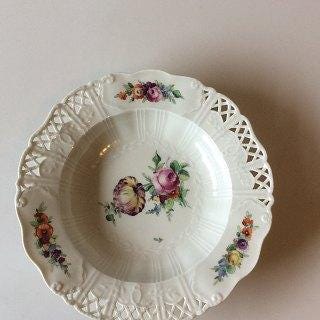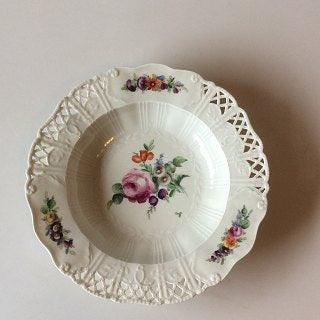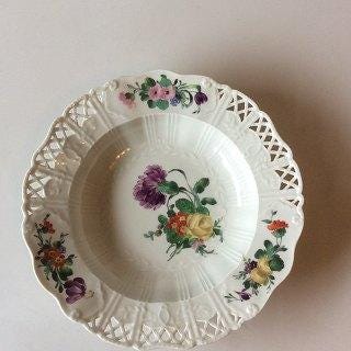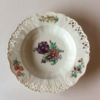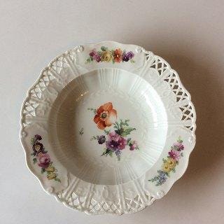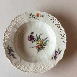 Royal Copenhagen Saksisk Blomst Dyb Tallerken i luksusmodel med gennembrudt V...