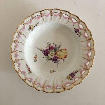 Royal Copenhagen Antik Fuld Saksisk Blomst Frugt Tallerken med Gennembrudt VI...