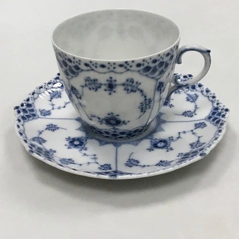 Royal Copenhagen Musselmalet Halvblonde Kaffekop og Underkop No. 756 VI SENDER