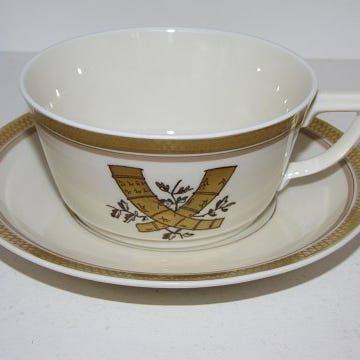 Royal Copenhagen Guldhornene med Orange Kant Kaffekop med Underkop No 883/948...