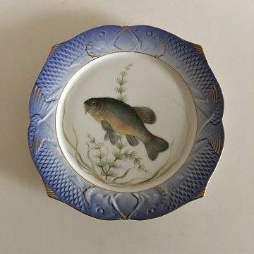 Royal Copenhagen Grøn Fisketallerken No 919/1710 med Tinca Vulgaris VI SENDER