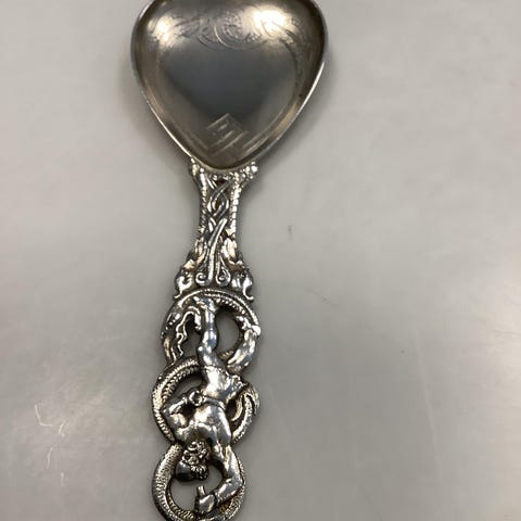 Sjov Serveringsske i Sølv af P. Chrisensen - Nykøbing M 1893 - 1937 VI SENDER