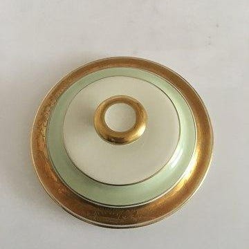 Royal Copenhagen Dagmar Kaviarskål No. 9111. 7,2 cm (2 53/64 in.) Pistaciegrøn og cremefarvet stel med guldkant designet af Thorkild Olsen i 1930'erne.
