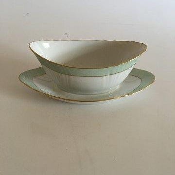 Royal Copenhagen Grøn Svejfet med Guld Sauceskål No 1871. 12.5 x 25 cm