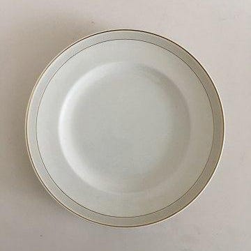 Bing & Grøndahl Tiber Ovalt Fad No 18. 24 cm. Hvid med Lysegrå Kant og Guldkant I god stand
