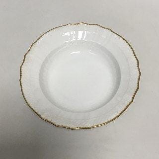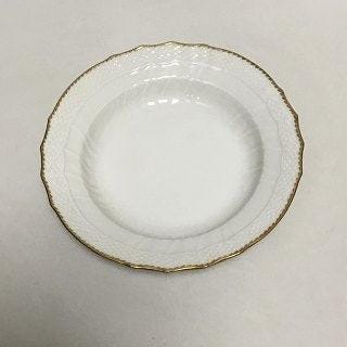 Royal Copenhagen Hvid Svejfet med takket guldkant (Stel 387/ Josephine) Dyb tallerken No 1616. Måler 22 cm