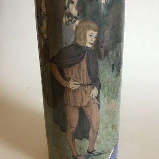 Bing & Grøndahl Art Nouveau Lågvase No. 215 med Guldsmede Motiv. 20 cm Høj. 11.5 cm Ø. I fin hel stand. Denne vare kan afhentes i følgende butik: Lyngbyvej 155, 2100 Kbh. Ø