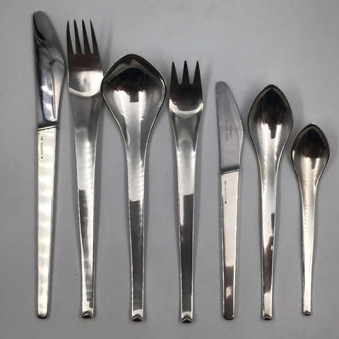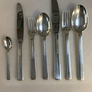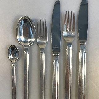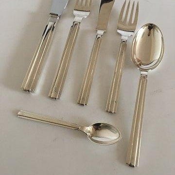 Hans Hansen Sterling Sølv Bestik Kristine 36 Dele. Karl Gustav Hansen. Sættet består af: 6 x Knive 22cm 6 x Skeer 19,5cm 6 x Gafler 18,8cm 6 x Skeer 16cm 6 x Gafler 14,2cm 6 x Skeer 11,8cm