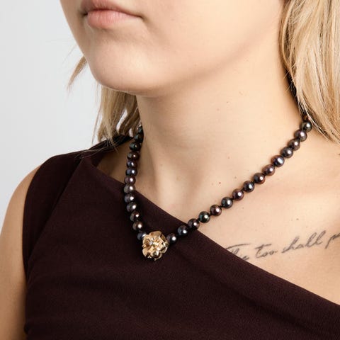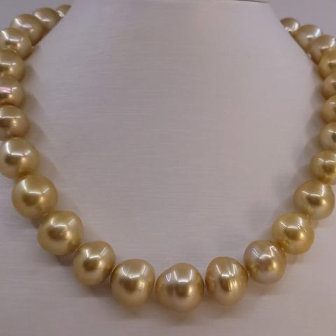 Perlehalskæde af runde hvide saltvandsperler med lås af 18kt. hvidguld med ni...