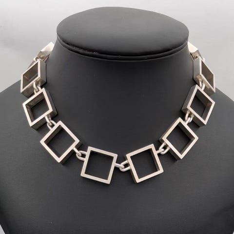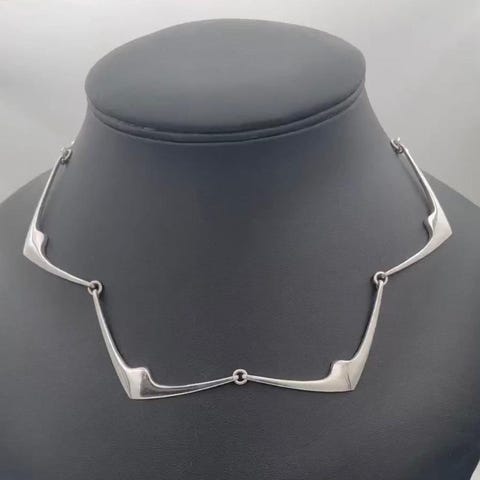 Hans Hansen Halskæde Bestående af Lædersnor og Sterling Sølv Vedhæng formet s...