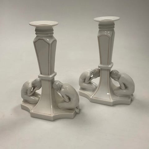Bing og Grøndahl par 4-armet Candelabra i mintgrøn og med guld VI SENDER