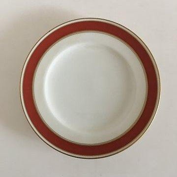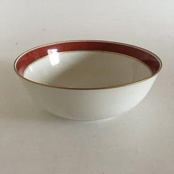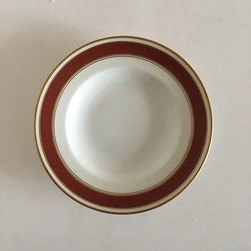 Bing & Grøndahl Egmont Dyb Tallerken No 22. Hvid med Vinrød Kant og Guldlinje...