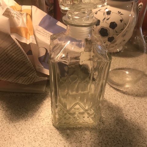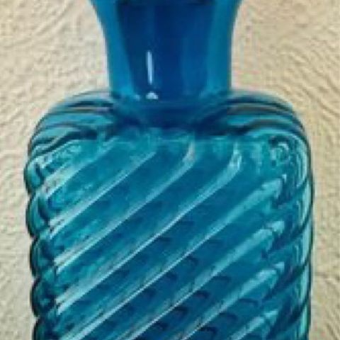 Flot turkis farvet glas karaffel, den er er 23 cm høj og 8 cm bred, den er i pæn stand.