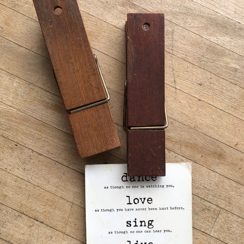 HUSK klemme, Retro i teaktræ med guld tryk. Længde 15 cm.